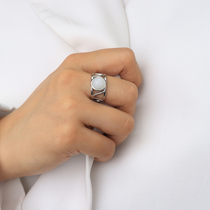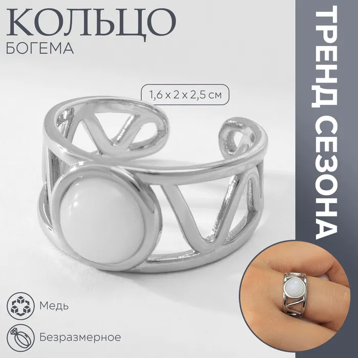Кольцо с камнем «Богема», безразмерное, цвет белый в серебре — Характеристики
