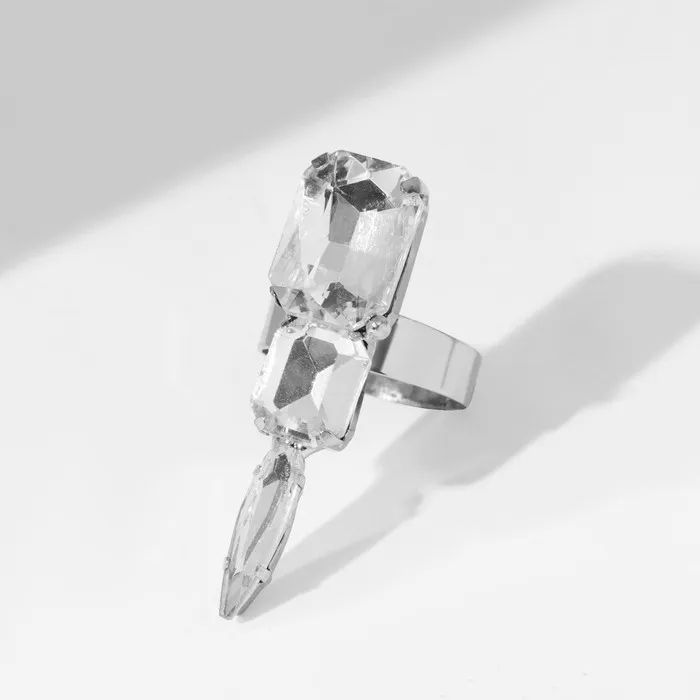 Кольцо с камнями «Мини коготь», безразмерное, цвет белый в серебре — Характеристики
