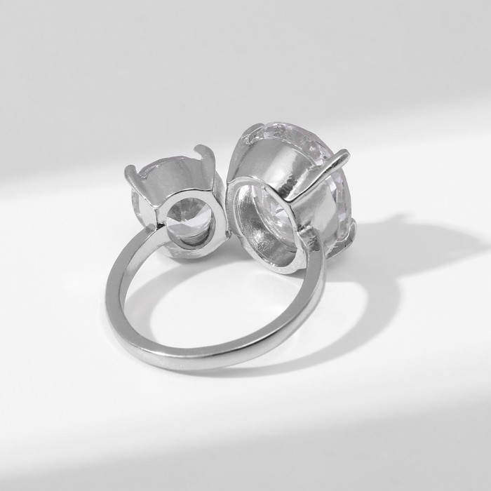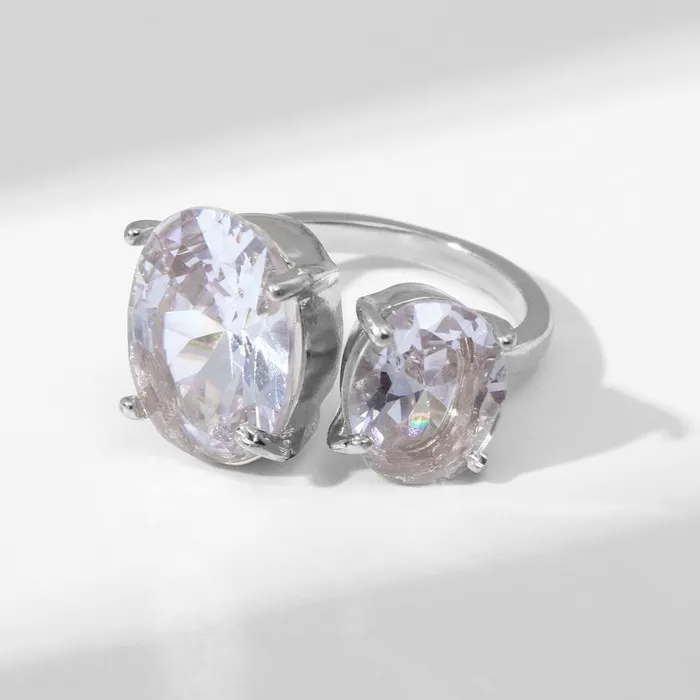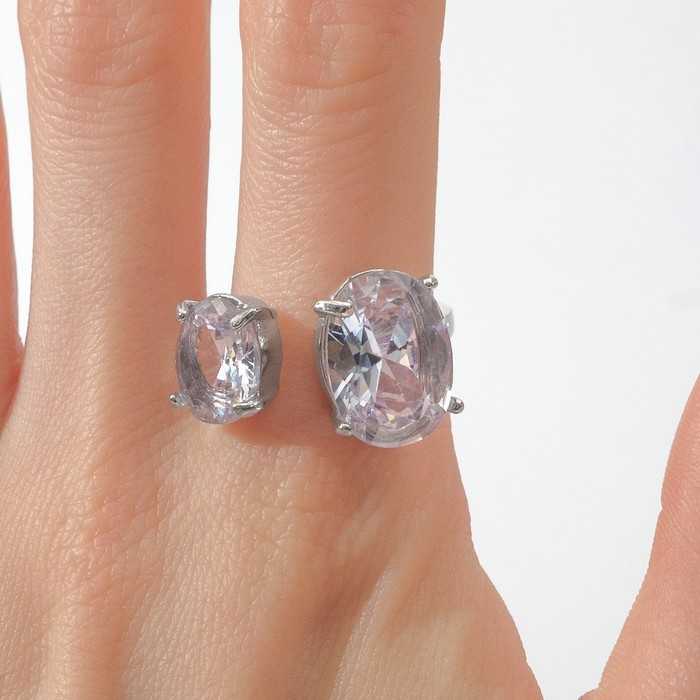 Кольцо с камнями «Овалы», безразмерное, цвет белый в серебре — Характеристики