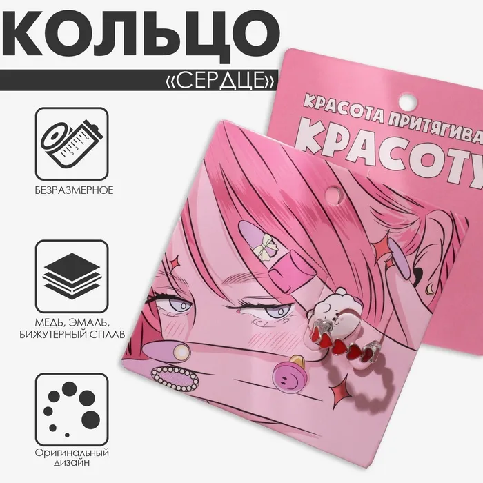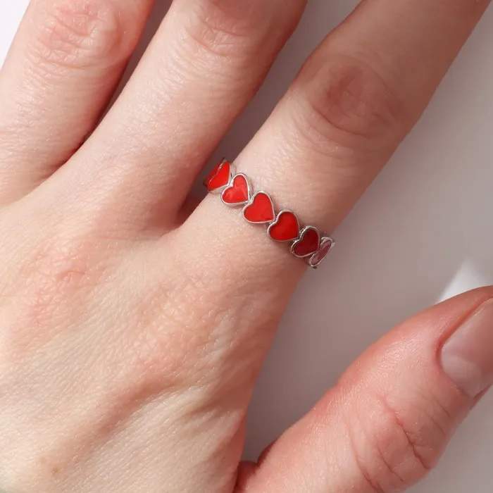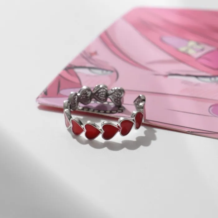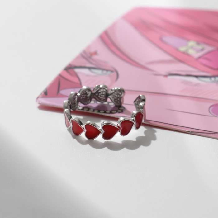 Кольцо «Сердце» долгие чувства, безразмерное, цвет красный в серебре — Характеристики