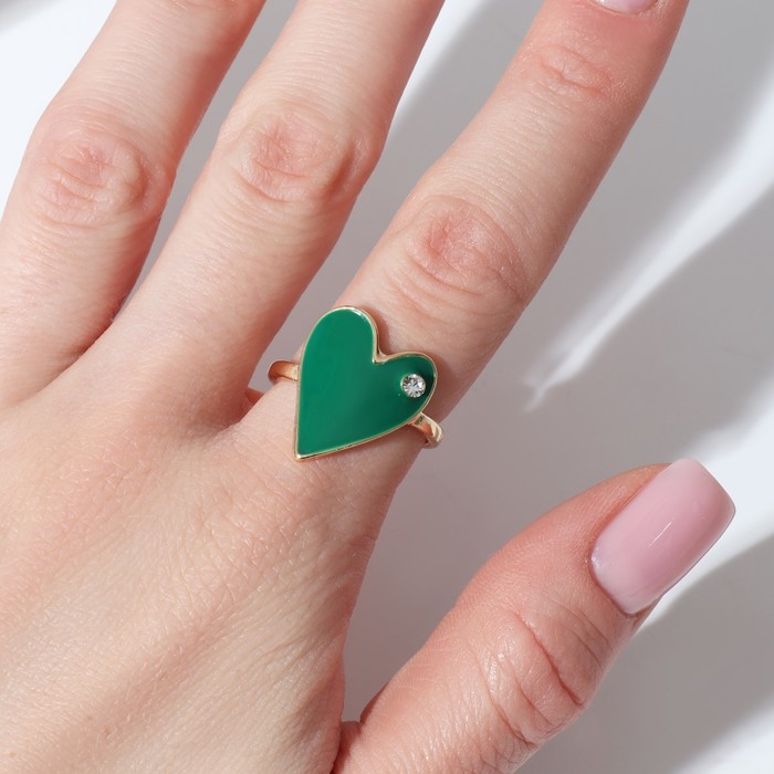 Кольцо «Сердце» гладкое, цвет зелёный в золоте, безразмерное — Характеристики