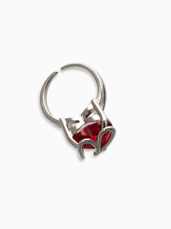 Кольцо «Сердце» с камнем, цвет красный в серебре, безразмерное — Характеристики