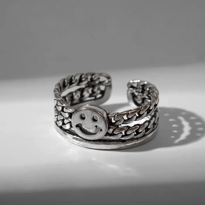 Кольцо «Смайлик» тренд, цвет чернёное серебро, безразмерное — Характеристики