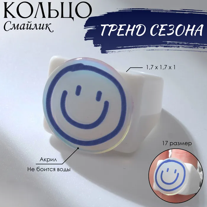 Кольцо «Смайлик», цвет сине-белый, 17 размер — Характеристики