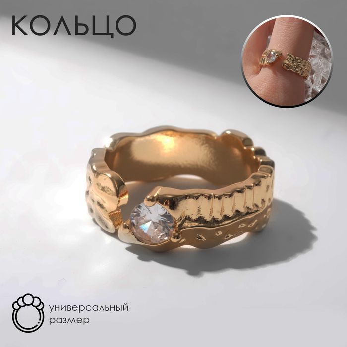 Кольцо «Таяние» мятое, цвет белый в золоте, безразмерное — Характеристики