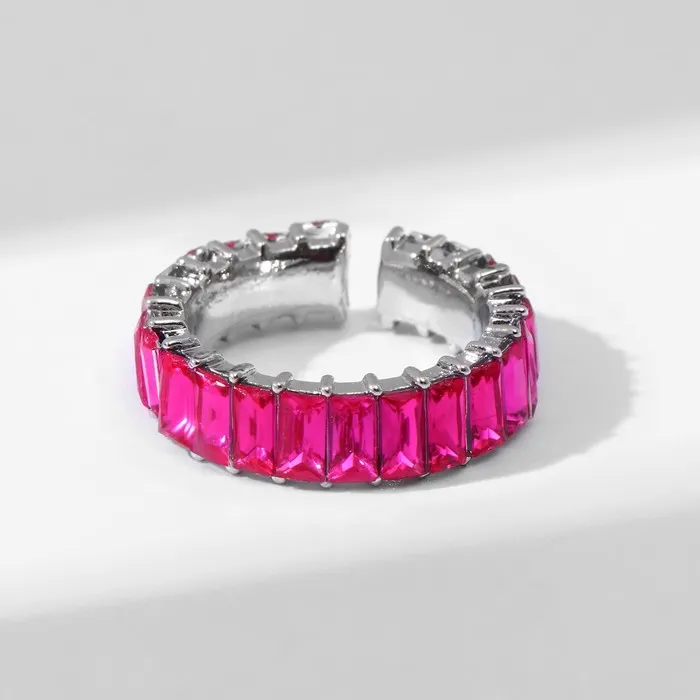 Кольцо «Тренд» параллель, цвет ярко-розовый в серебре, безразмерное (от 17 размера) — Характеристики