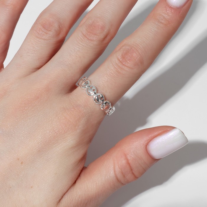 Кольцо «Тренд» смайлики, цвет серебро, безразмерное — Характеристики