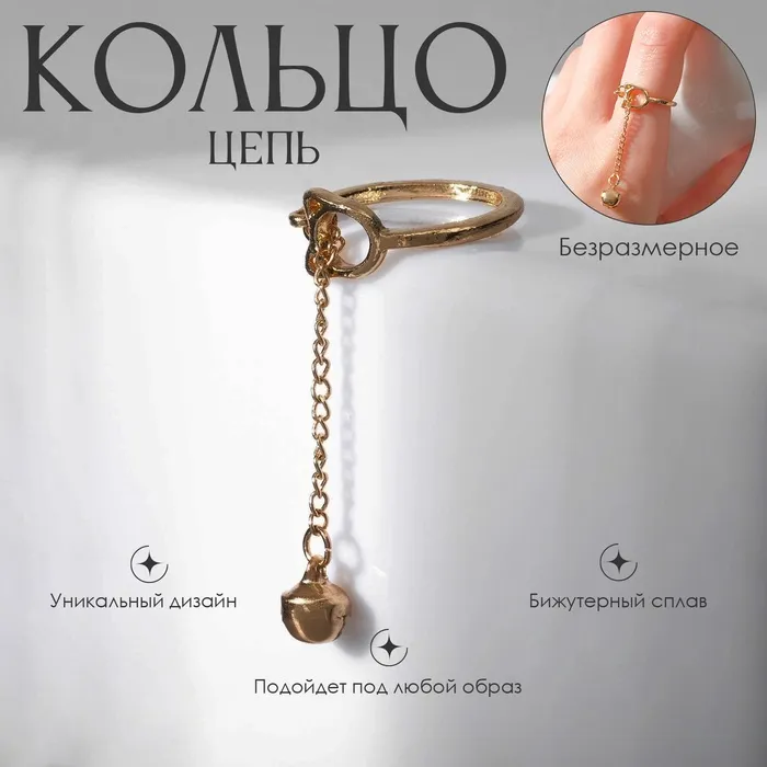 Кольцо «Цепь» кошечка, цвет золото, безразмерное — Характеристики