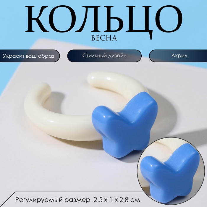 Кольцо «Весна» бабочка, цвет бело-голубой, безразмерное — Характеристики
