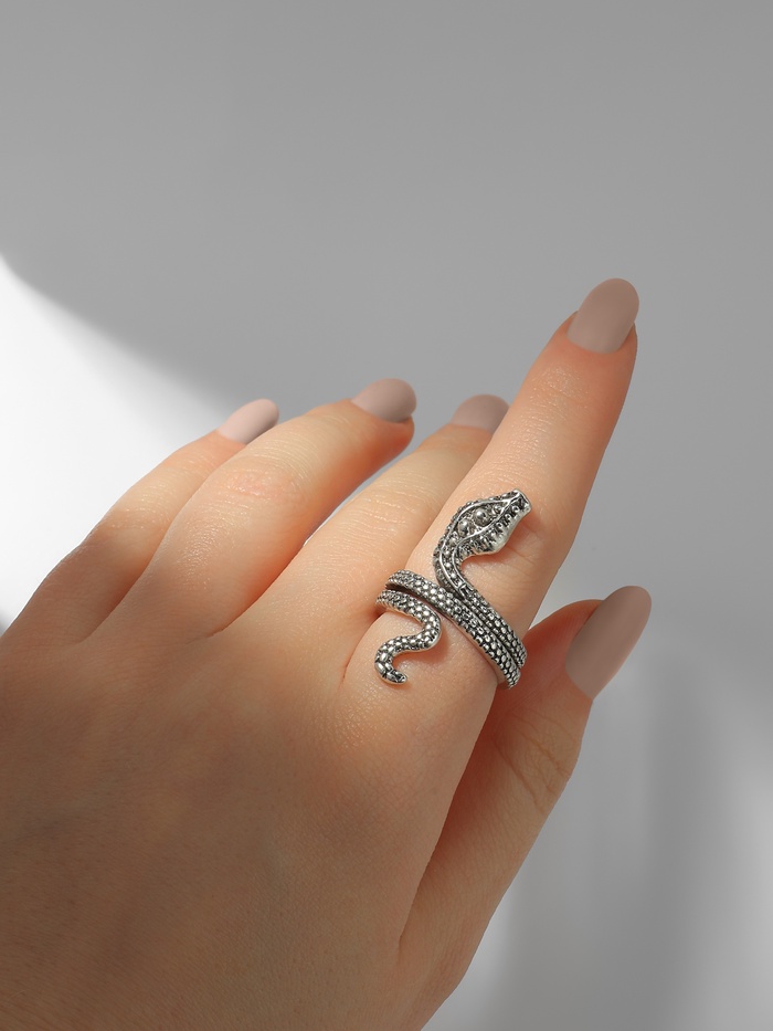 Кольцо «Змея» два глаза, цвет чернёное серебро, безразмерное — Характеристики