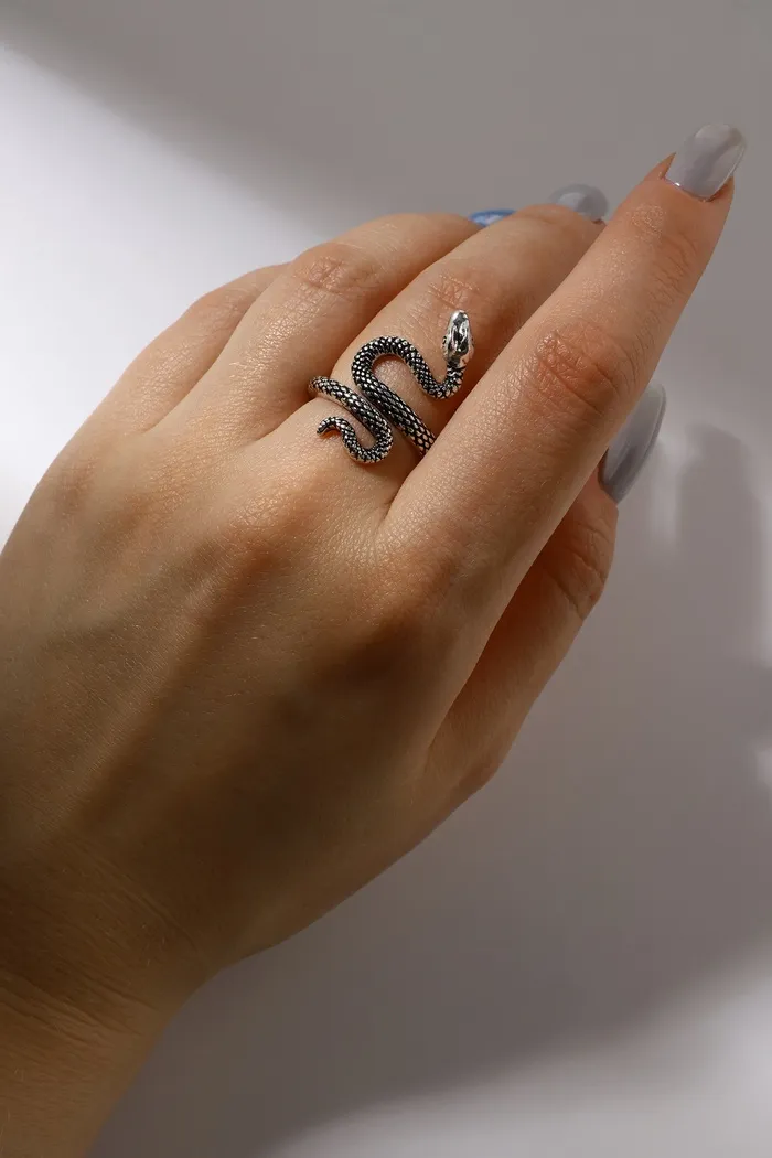 Кольцо «Змея» изогнутая, цвет чернёное серебро, безразмерное — Характеристики