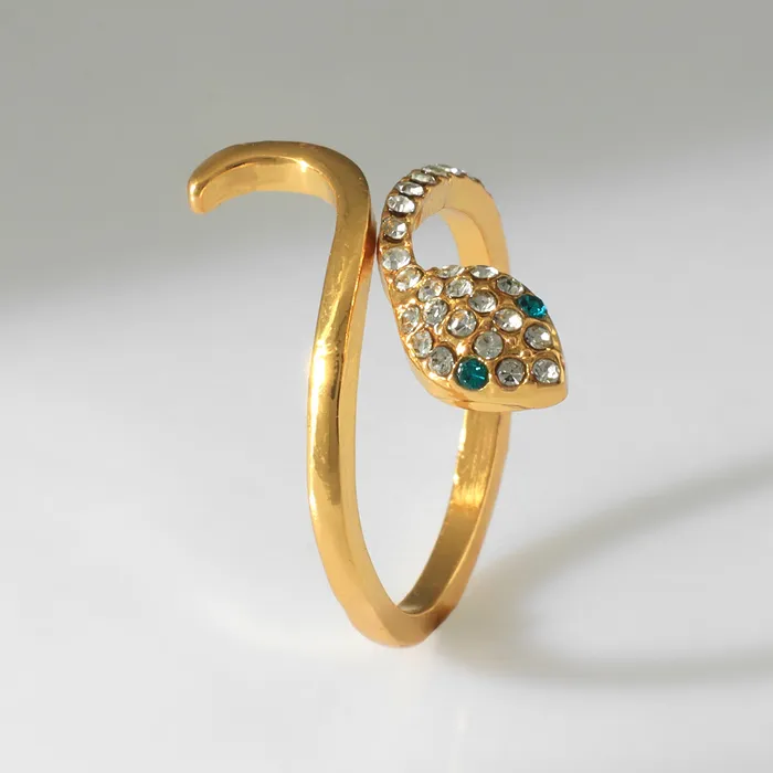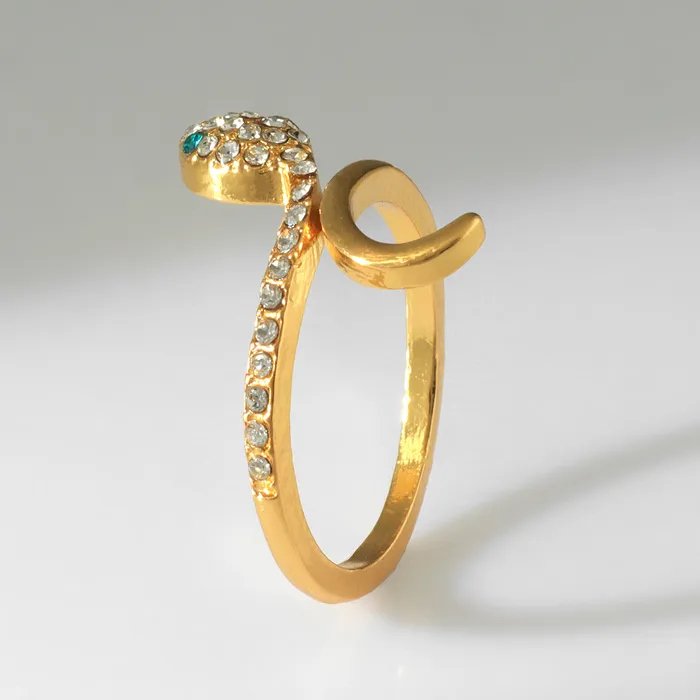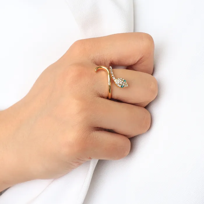 Кольцо «Змея» миниатюрная, бело-зелёное в золоте, безразмерное — Характеристики