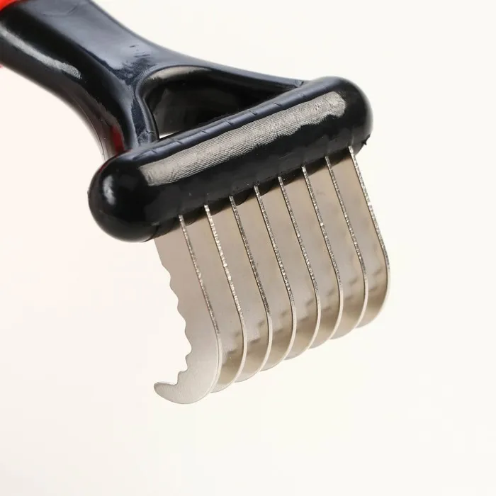 Колтунорез загнутый, 8 лезвий, 5,5 х 15 см, чёрно-красный
