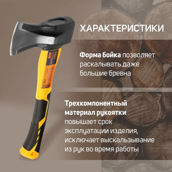 Колун кованый ТУНДРА, клиновидная форма, фиберглассовое 3К топорище 43 см, 1 кг — Характеристики