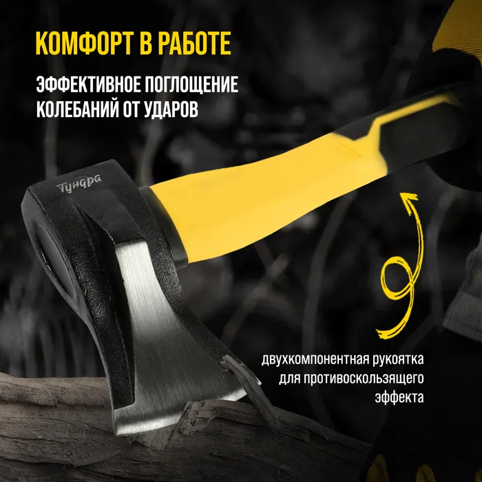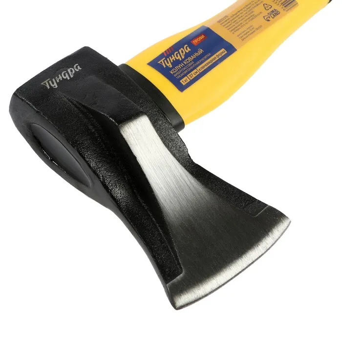 Колун кованый ТУНДРА ПРОФИ, клиновидная форма, фиберглассовое 3К топорище 37 см, 1 кг — Характеристики
