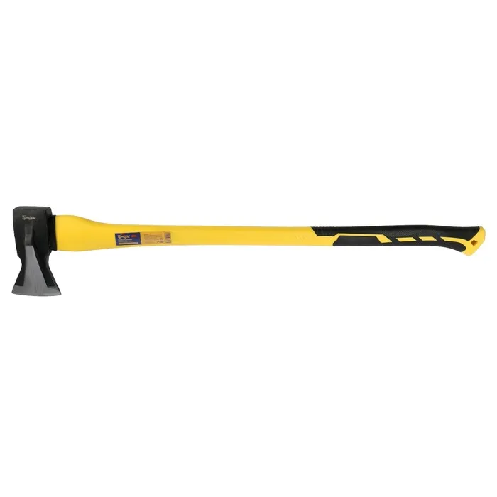 - Трехкомпонентная рукоять из фибергласса: Топорище сочетает прочность и легкость. Оно устойчиво к механическим повреждениям, вибрациям и воздействию окружающей среды, что увеличивает срок службы инструмента.