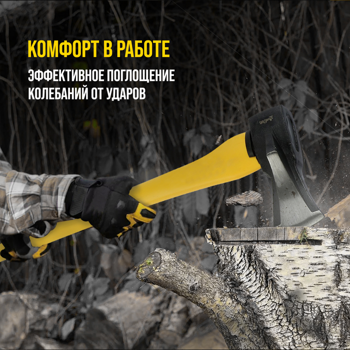 Работа с деревом: Инструмент создан для регулярной колки твёрдых пород древесины — берёзы, дуба, ясеня. Оптимальное сочетание веса и длины топорища позволяет работать без излишних усилий. Профессиональный подход к заготовке дров.