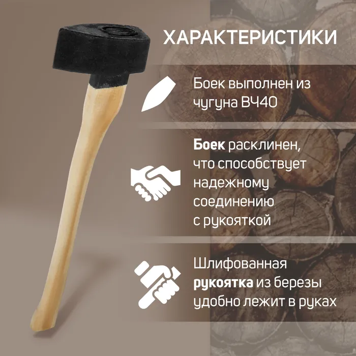 Колун литой ЛОМ, деревянное топорище, 2.7 кг — Характеристики