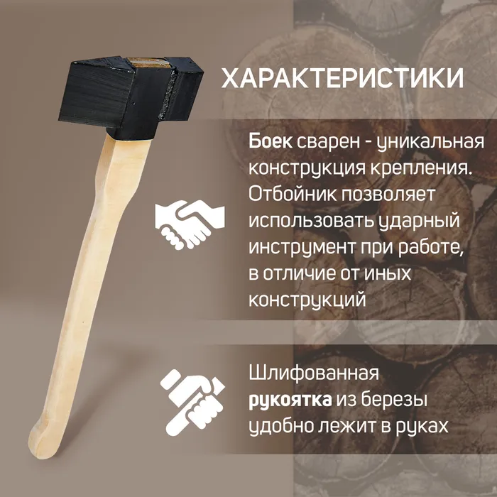 Колун-топор из стального проката ТУНДРА, с березовым топорищем и отбойником, 3.5 кг — Характеристики
