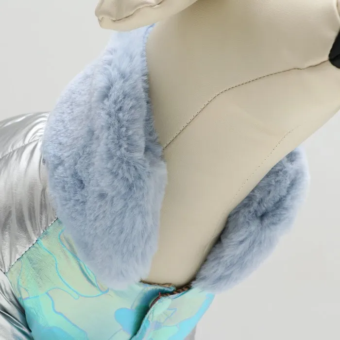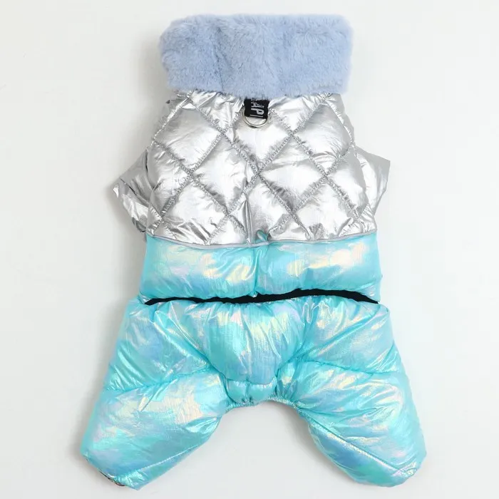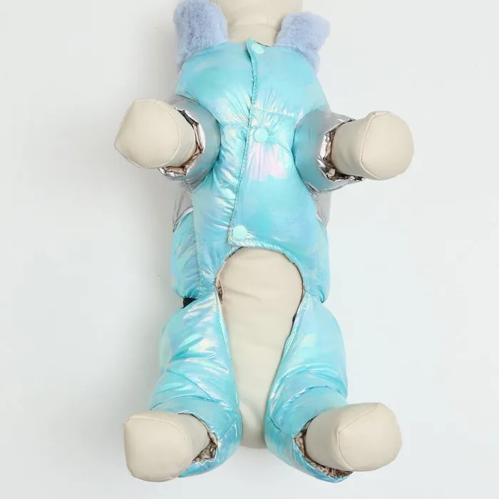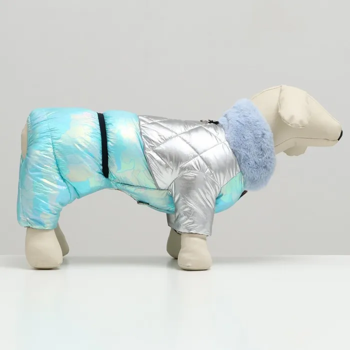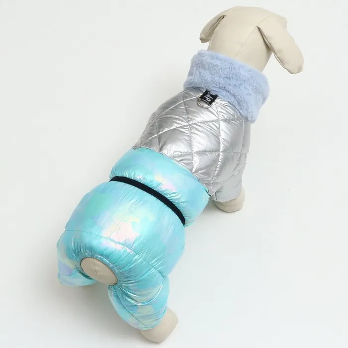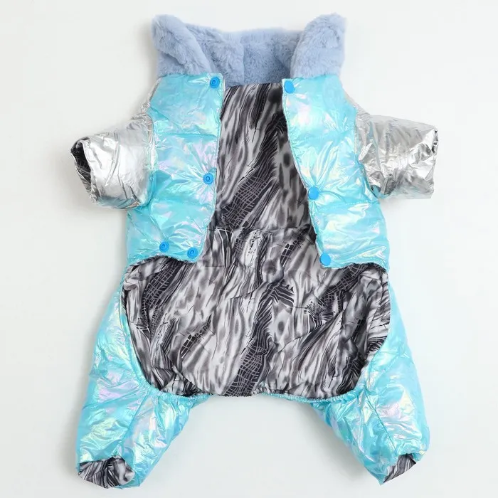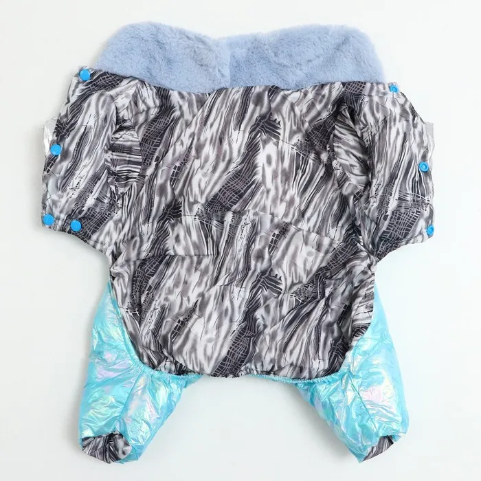 Зимний и уютный комбинезон для вашего питомца. Комбинезон застегивается по животу на кнопки, имеет удобную резинку-утяжку и высокий меховой воротник. С таким милым комбинезоном ваш любимец будет не только очень стильным, но и защищенным от холода и ветра, а осенние и зимние прогулки для вас теперь только в радость! Наружная поверхность комбинезона водонепроницаема, внутри комбинезон набит плотным синтепоном, что обеспечивает тепло и комфорт. Имеется специальное кольцо для поводка. Модель унисекс (для мальчиков и девочек), в области паха живот открыт.