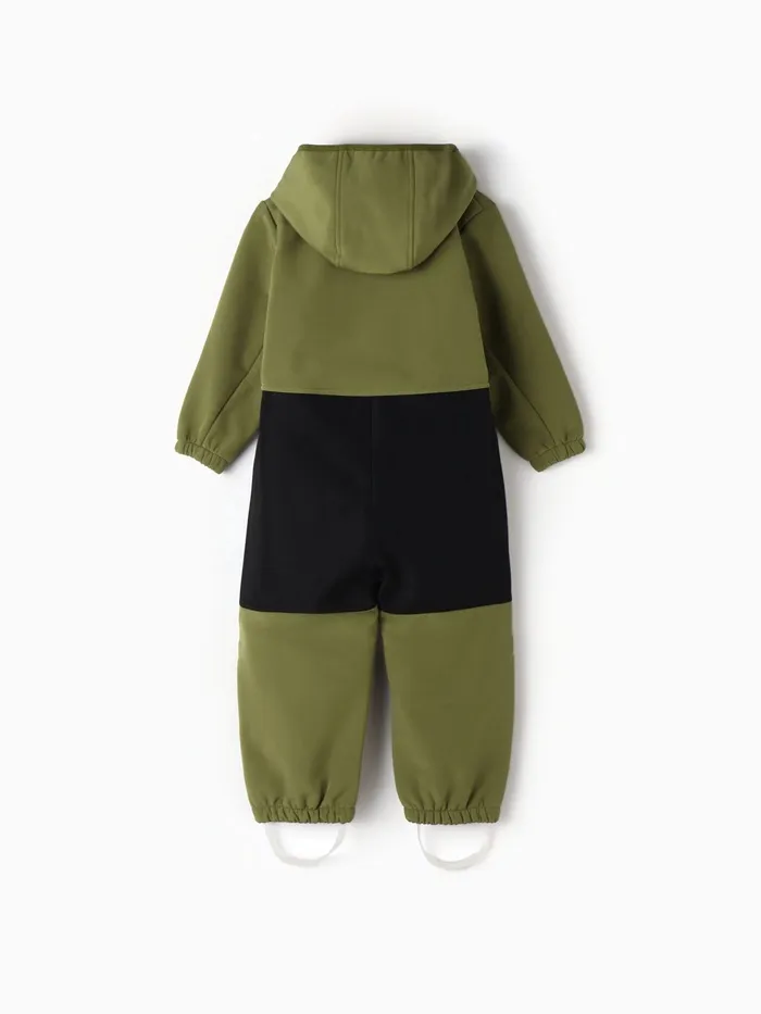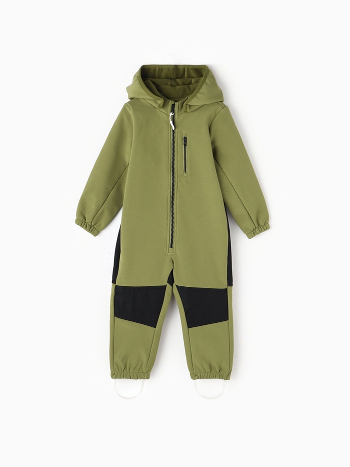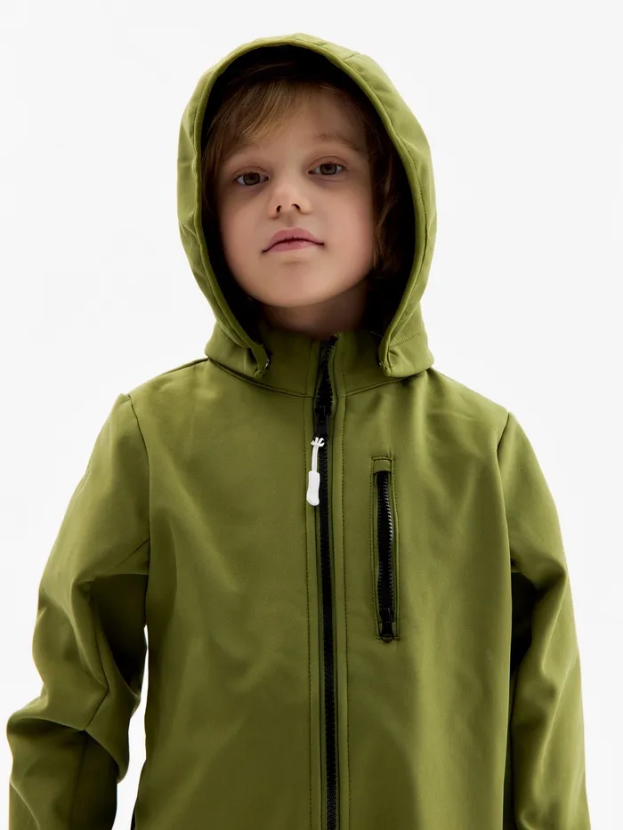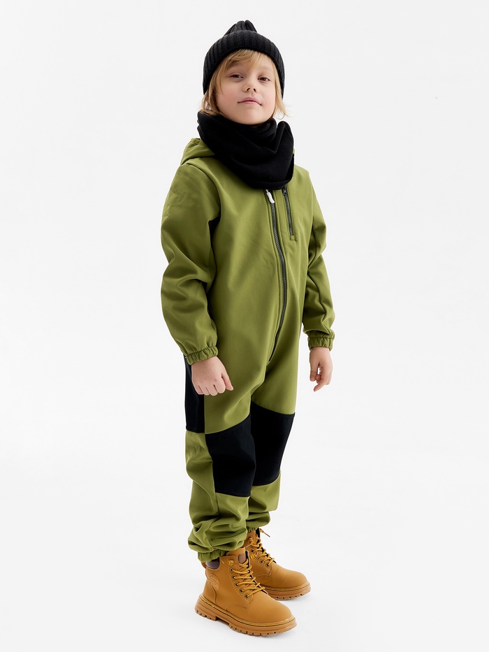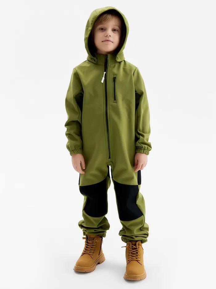 Оливковый комбинезон для мальчиков из материала Softshell - идеальный выбор для демисезона. Этот стильный однотонный комбинезон защищает ребёнка от дождя и ветра, оставаясь при этом дышащим и удобным.