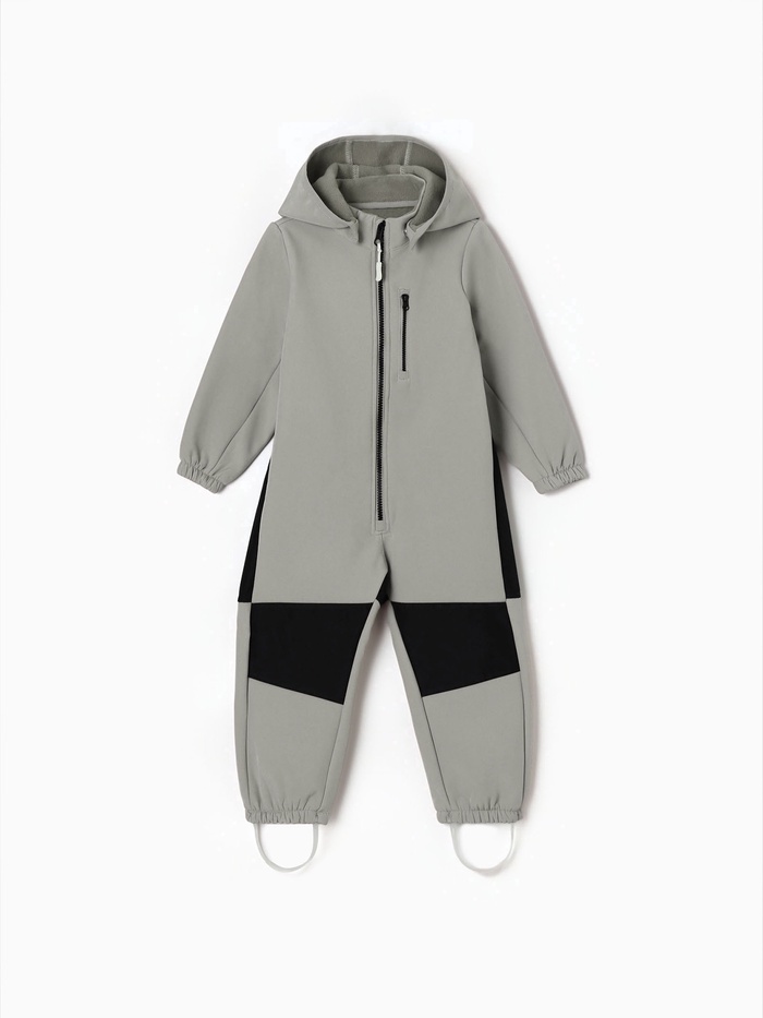 Серый демисезонный комбинезон для мальчика — отличный выбор для прогулок в межсезонье. Выполнен из материала Softshell, он сочетает в себе водонепроницаемые свойства и комфортный внутренний флисовый слой, что защищает от промокания и сохраняет тепло.