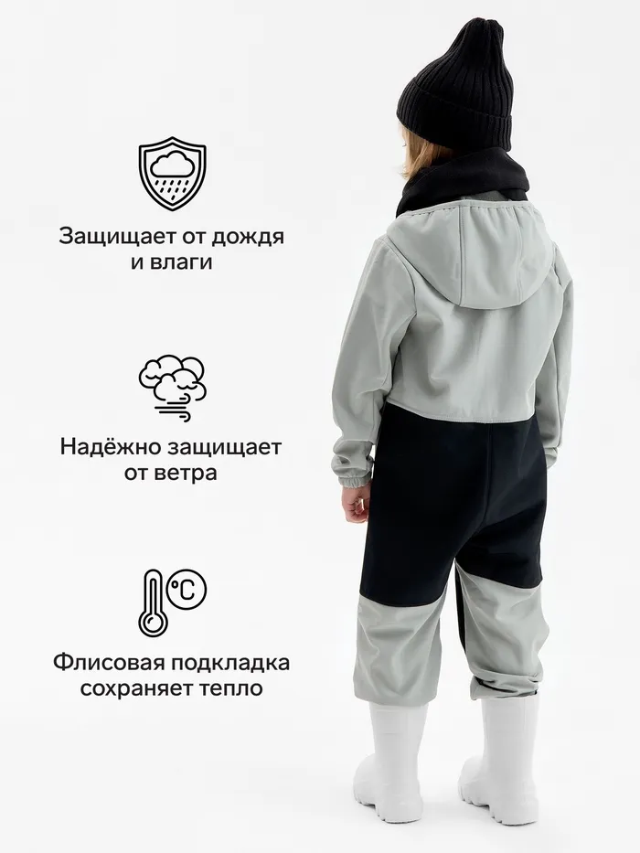 Комбинезон демисезонный для мальчиков MINAKU из Softshell на флисе, непромокаемый, серый, рост 92 см — Характеристики