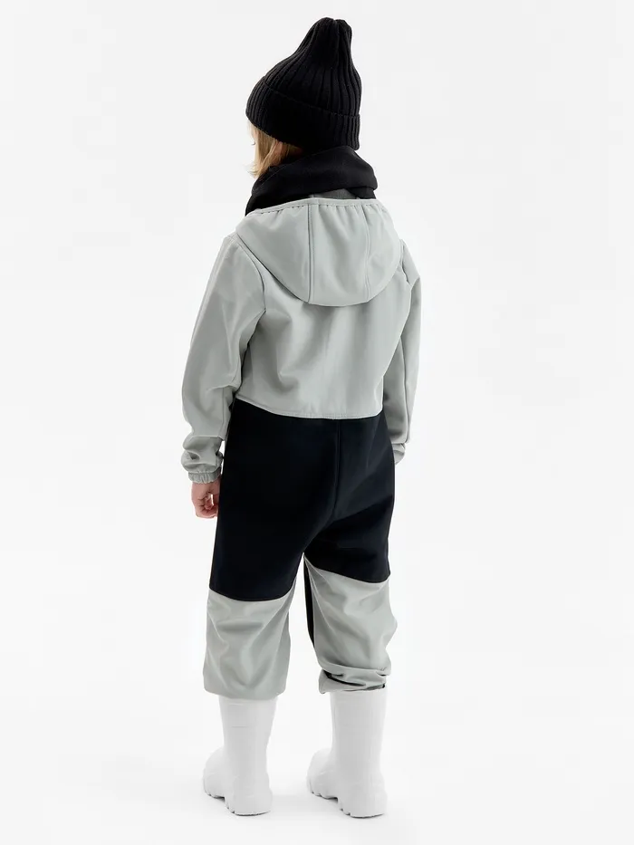 Серый демисезонный комбинезон для мальчика — отличный выбор для прогулок в межсезонье. Выполнен из материала Softshell, он сочетает в себе водонепроницаемые свойства и комфортный внутренний флисовый слой, что защищает от промокания и сохраняет тепло.