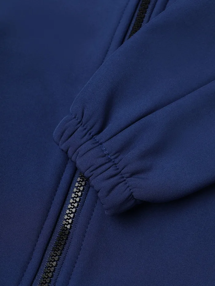 Демисезонный комбинезон для мальчиков из софтшелла станет идеальным решением для активных прогулок. Тёмно-синий цвет и плотная мембранная ткань защитят вашего ребёнка от ветра и дождя в межсезонье.