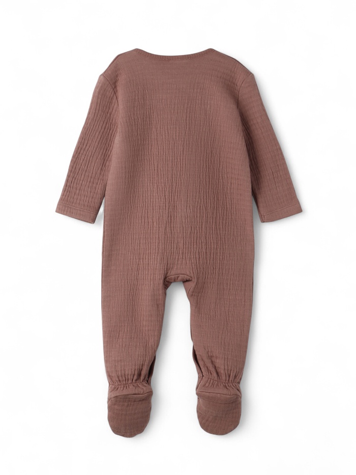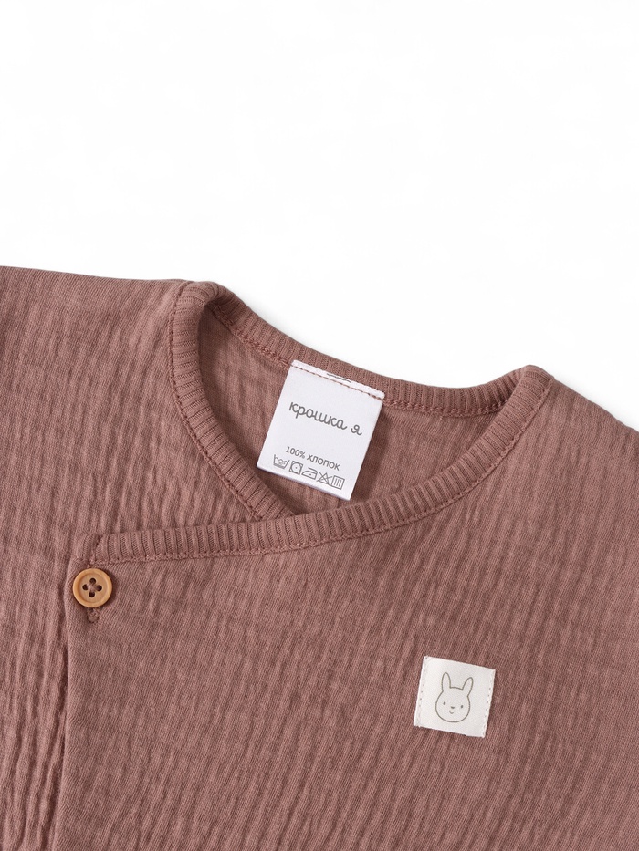 Укутайте своего малыша в нежные объятия комфорта с нашим шоколадным комбинезоном. Созданный из мягкой жатой ткани, этот комбинезон идеально подходит для малышей ростом 68-74 см, обеспечивая свободу движений и приятные тактильные ощущения. Идеален для сна, игр и познания мира - каждый день будет наполнен уютом и радостью.