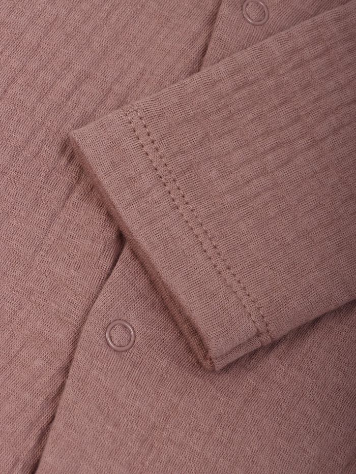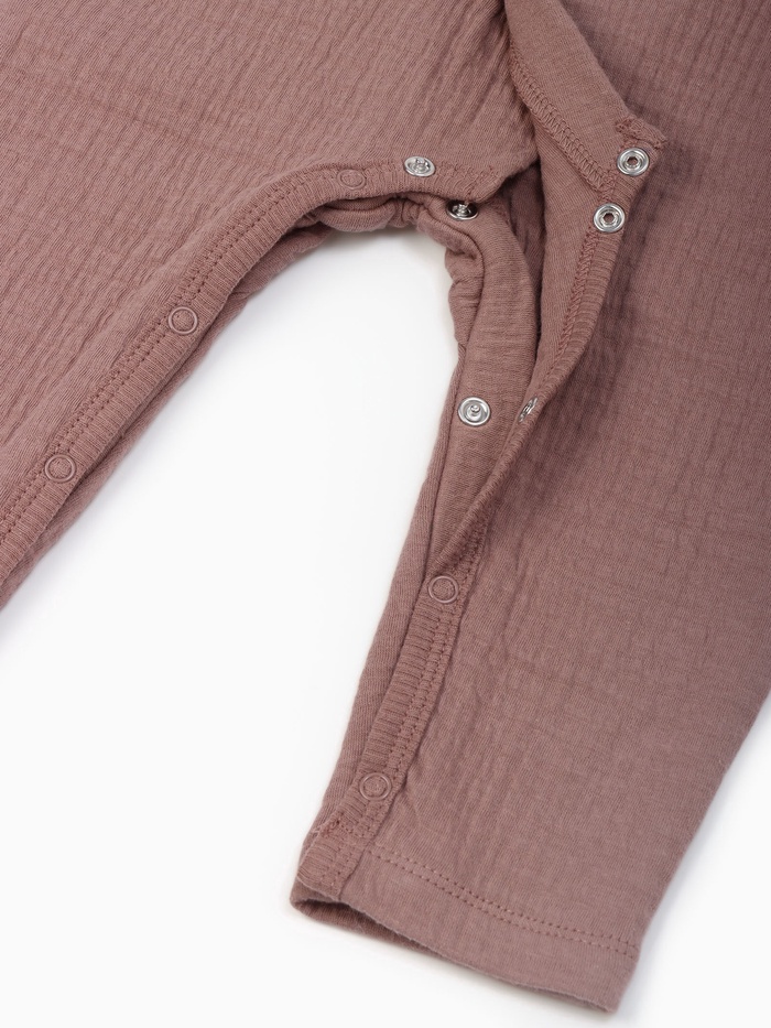 Укутайте своего малыша в нежные объятия комфорта с нашим шоколадным комбинезоном. Созданный из мягкой жатой ткани, этот комбинезон идеально подходит для малышей ростом 80-86 см, обеспечивая свободу движений и приятные тактильные ощущения. Идеален для сна, игр и познания мира - каждый день будет наполнен уютом и радостью.