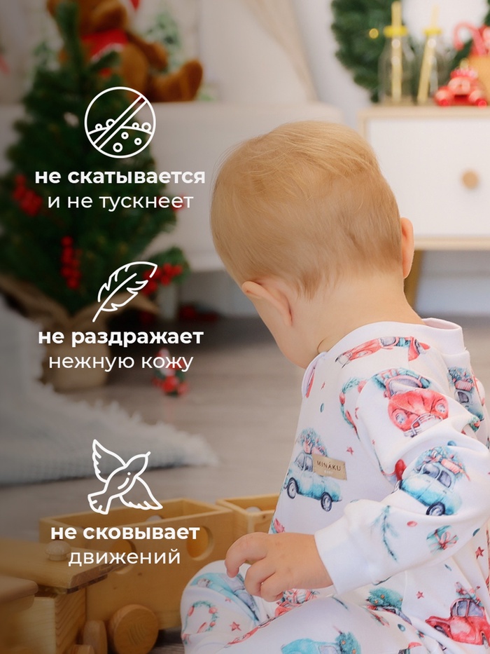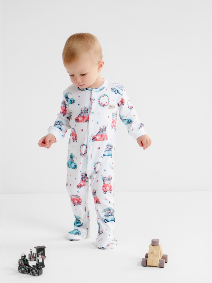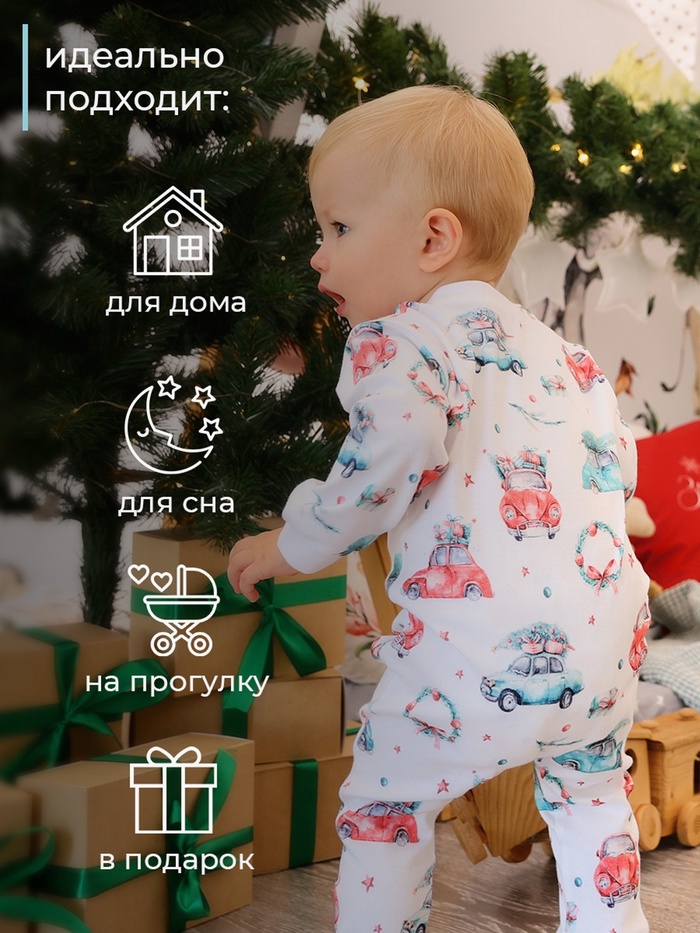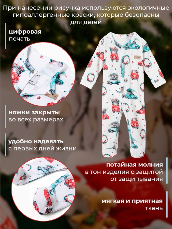 Комбинезон детский MINAKU "New Year's cars", цвет белый, рост 68-74 см — Характеристики