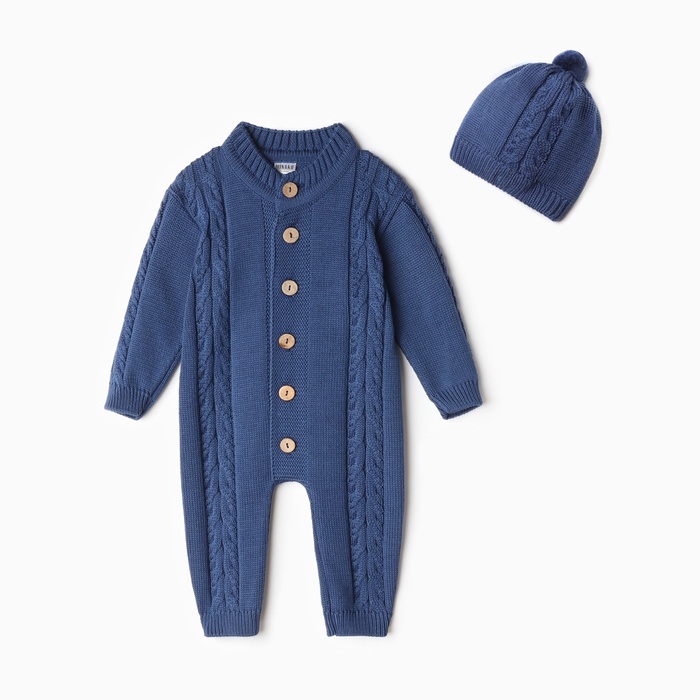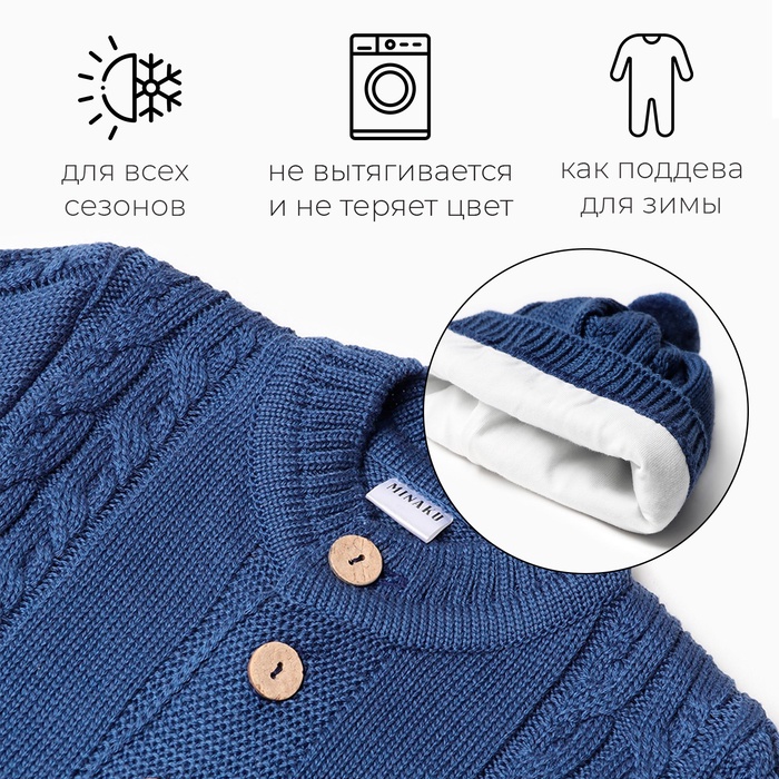 Комбинезон детский с шапочкой вязаный MINAKU, рост 62-68, цвет синий — Характеристики