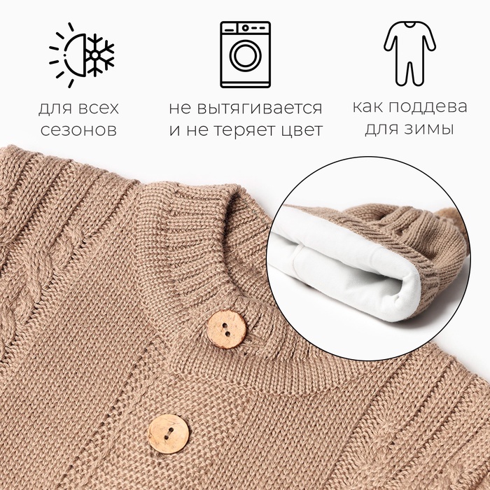 Комбинезон детский с шапочкой вязаный MINAKU, рост 68-74, цвет коричневый — Характеристики