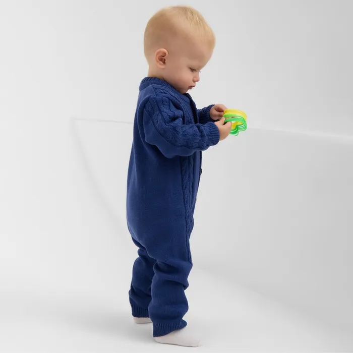 Комбинезон детский с шапочкой вязаный MINAKU, рост 68-74, цвет синий — Характеристики