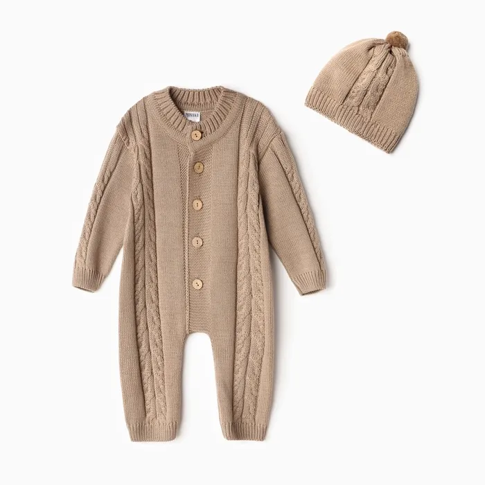 Комбинезон детский с шапочкой вязаный MINAKU, рост 92-98, цвет коричневый — Характеристики