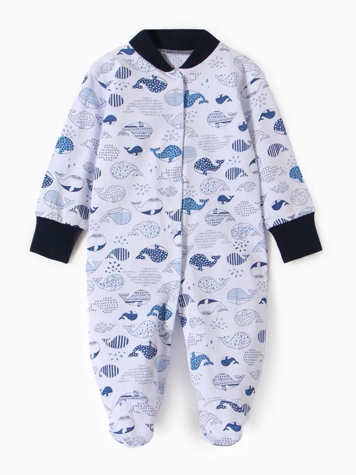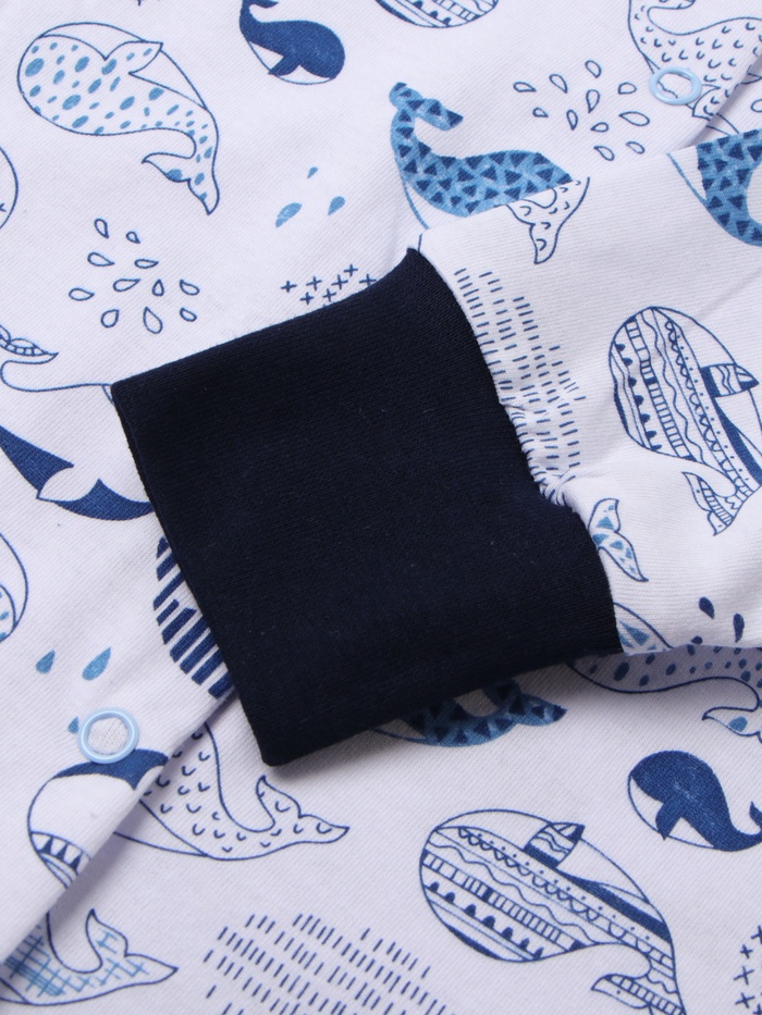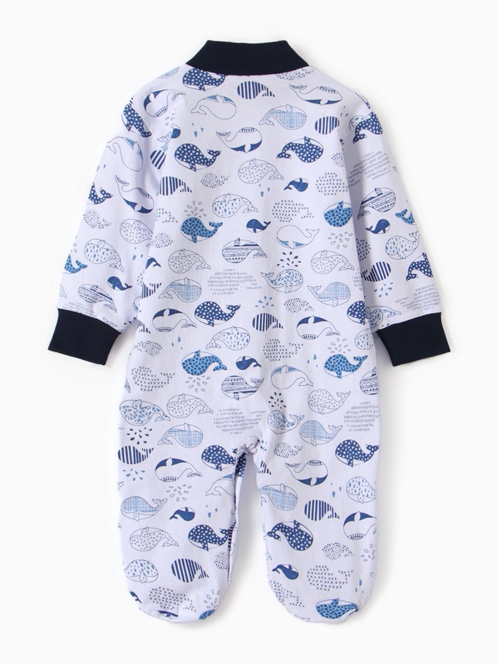 Комбинезон детский с закрытыми ножками "Киты", цвет белый/синий, рост 68 см — Характеристики