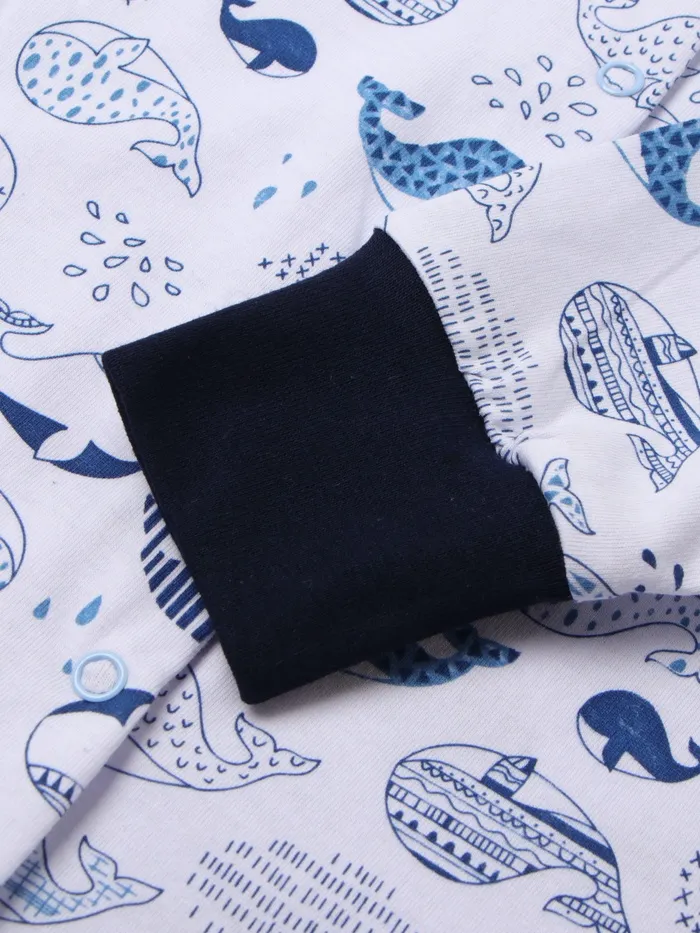 Комбинезон детский с закрытыми ножками "Киты", цвет белый/синий, рост 68 см