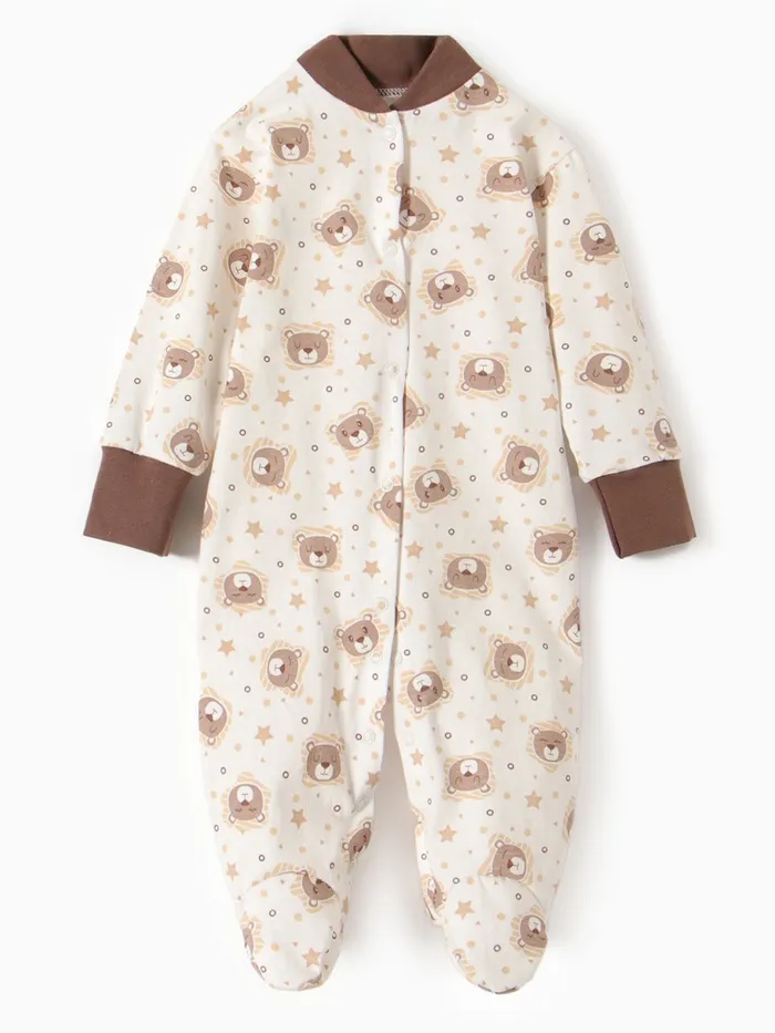 Комбинезон детский с закрытыми ножками "Львята", цвет молочный, рост 62 см