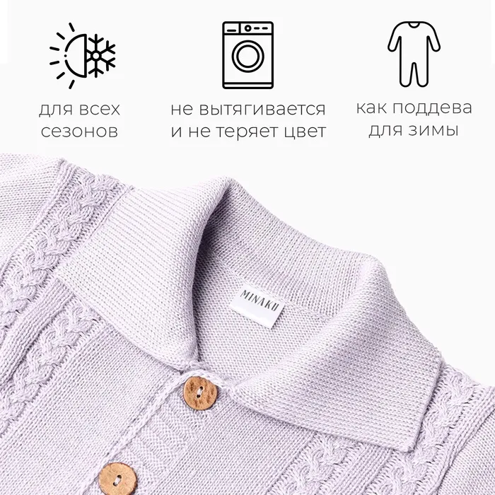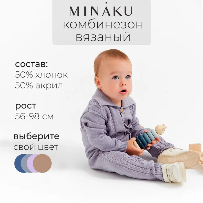 Комбинезон детский вязаный MINAKU, рост 86-92, цвет серо-голубой — Характеристики