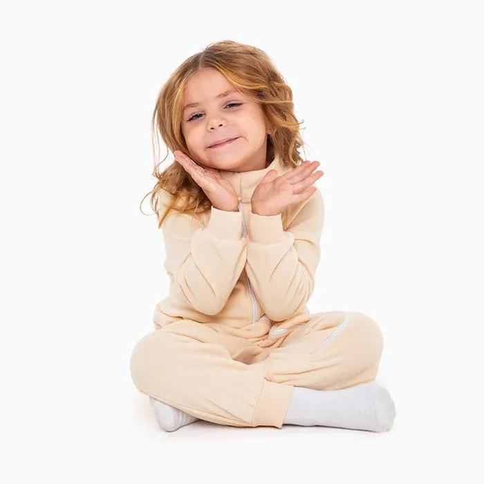 Комбинезон воротник-стойка, бежевый, рост 104-110 см