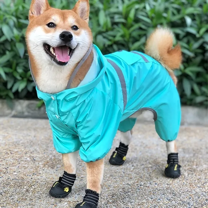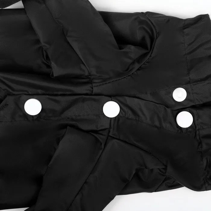 Стильный комбинезон с капюшоном выполнен из легкой ткани с водоотталкивающей пропиткой, он предназначен для защиты вашей собаки от холода, ветра, а также для предотвращения загрязнения шерсти во время прогулок, чехлы на лапах защищают от грязи и повреждений.