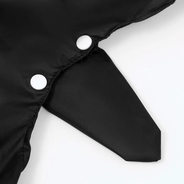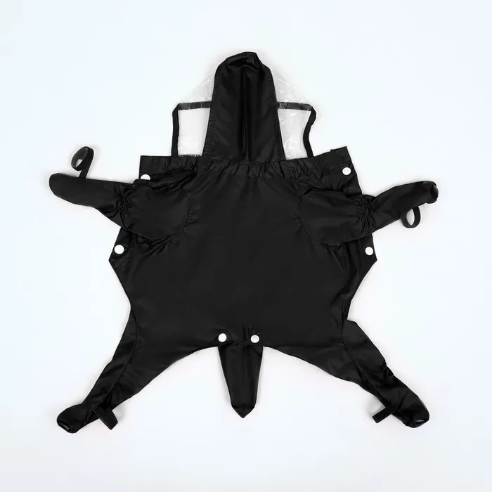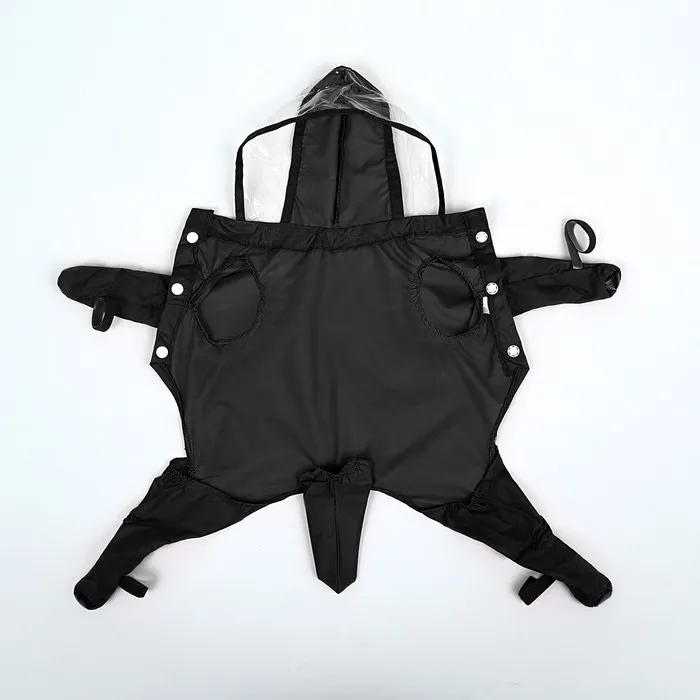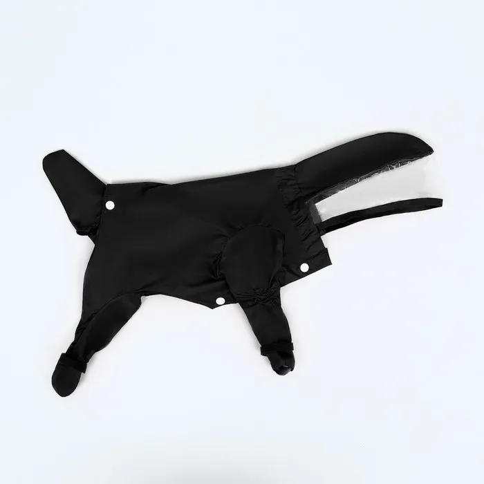 Капюшон с козырьком сделан из прозрачного материала, во время прогулки собаке виден обзор, но при этом мордочка защищена от ветра и дождя.
