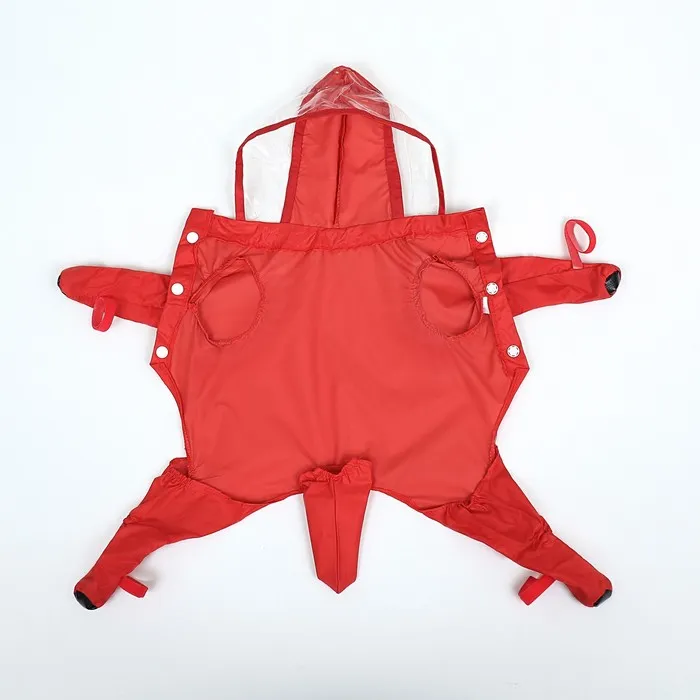 Капюшон с козырьком сделан из прозрачного материала, во время прогулки собаке виден обзор, но при этом мордочка защищена от ветра и дождя.