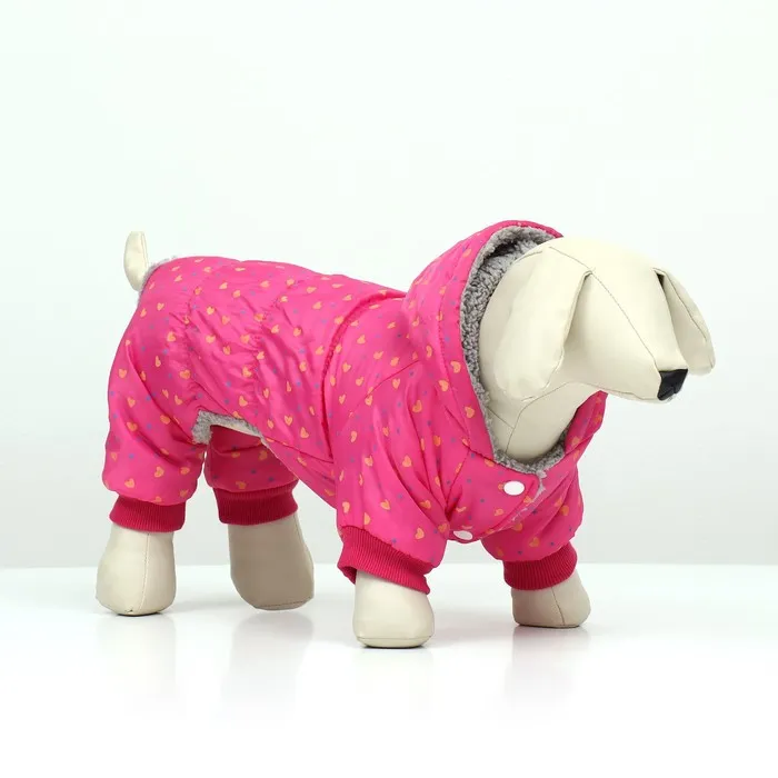 Стильный комбинезон с капюшоном выполнен из легкой ткани с водоотталкивающей пропиткой, он предназначен для защиты вашей собаки от холода, ветра, а также для предотвращения загрязнения шерсти во время прогулок, чехлы на лапах защищают от грязи и повреждений.