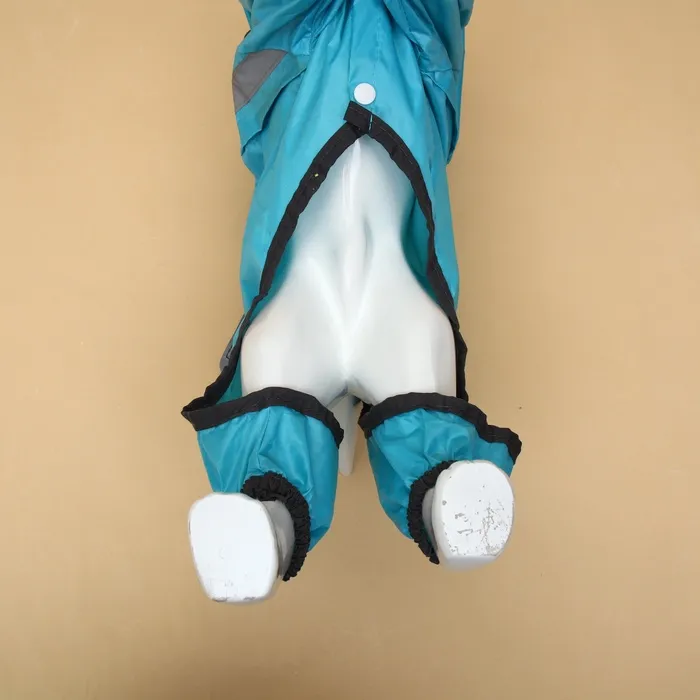 Комбинезон застегивается на кнопки, на лапах есть утягивающие резиночки, а на капюшоне есть прозрачный козырек, который защитит вашего питомца от ветра, пыли и дождя.