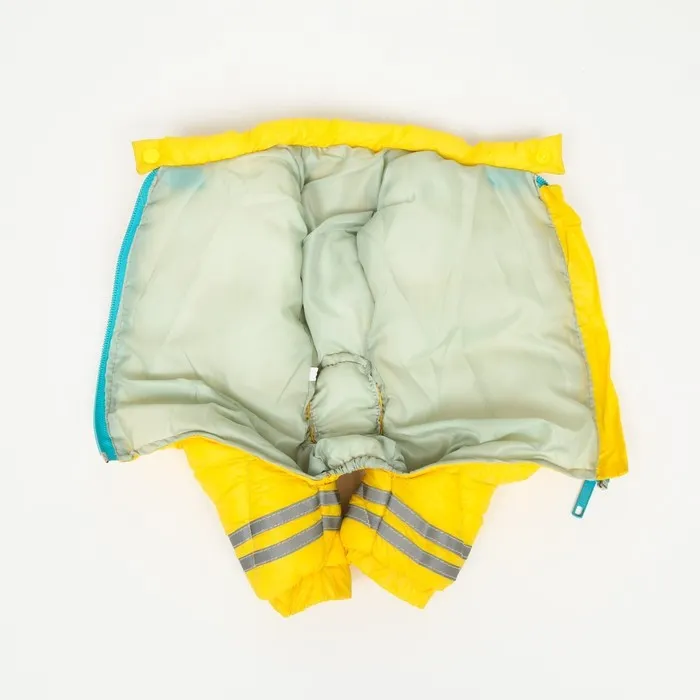 Зимний комбинезон для собак застегивается молнией на спине, благодаря этому животик питомца максимально защищен от ветра.