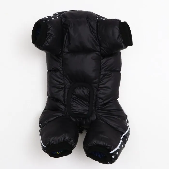 Зимний комбинезон для собак застегивается молнией на спине, благодаря этому животик питомца максимально защищен от ветра.