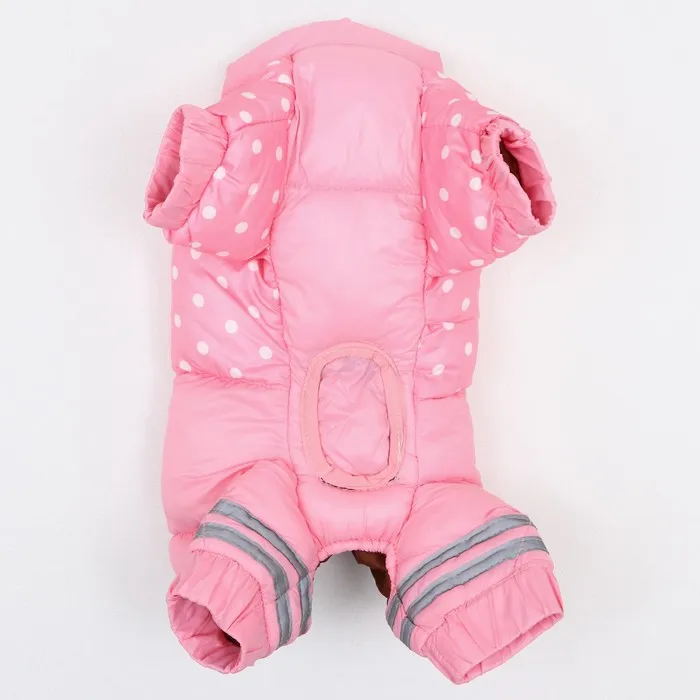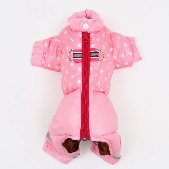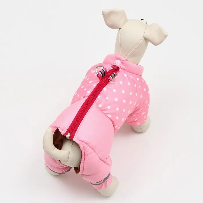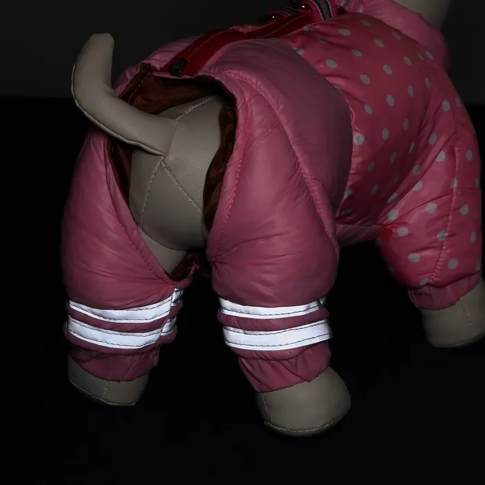 Зимний комбинезон для собак застегивается молнией на спине, благодаря этому животик питомца максимально защищен от ветра.