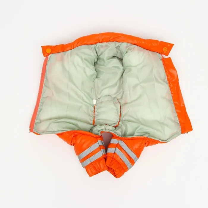 Зимний комбинезон для собак застегивается молнией на спине, благодаря этому животик питомца максимально защищен от ветра.